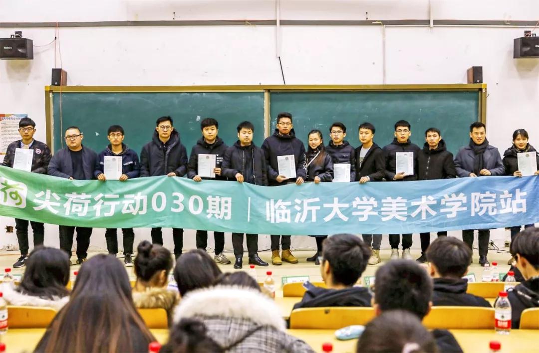 2018年12月6日上午,由尖荷系·设计教育实践运动组委会主办,临沂大学美术学院、沐熙集团、槿创传播、费米奥纳联合承办的“尖荷行动030期”在临沂大学美术学院正式启动。